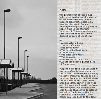 Rotary is a game where three or more players take on the roles of young characters trying to solve a mystery, prevent a disaster, or track down a creature from another world. It takes place on a single night in a suburb adjacent to a city somewhere in North America sometime around the 80s. Maybe the NES has been released, maybe He-Man is on TV, maybe they have Teddy Ruxpin in toy stores. The vaguer the better. The game is designed to have multiple players bounce ideas and inspiration off of one another but it CAN be played solo.